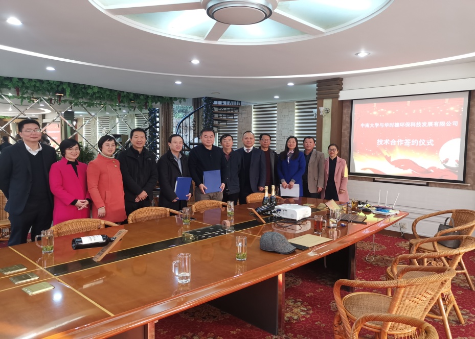 孙伟经理和何劲松董事长代表双方签订了技术增资入股协议,胡岳华--孙伟教授科研团队长期以来从事选冶联合开发研究,他们开发的金属溶液净化技术巧妙的把矿化理念运用到溶液除杂过程,在锌冶炼、镍溶液、锰溶液、铜溶液等金属溶液除杂过程都有革命性提高,该技术以技术作价和增资入股方式被华时捷环保买断,开创了技术转化和校企合作的新模式,促进了产学研深度融合发展。
